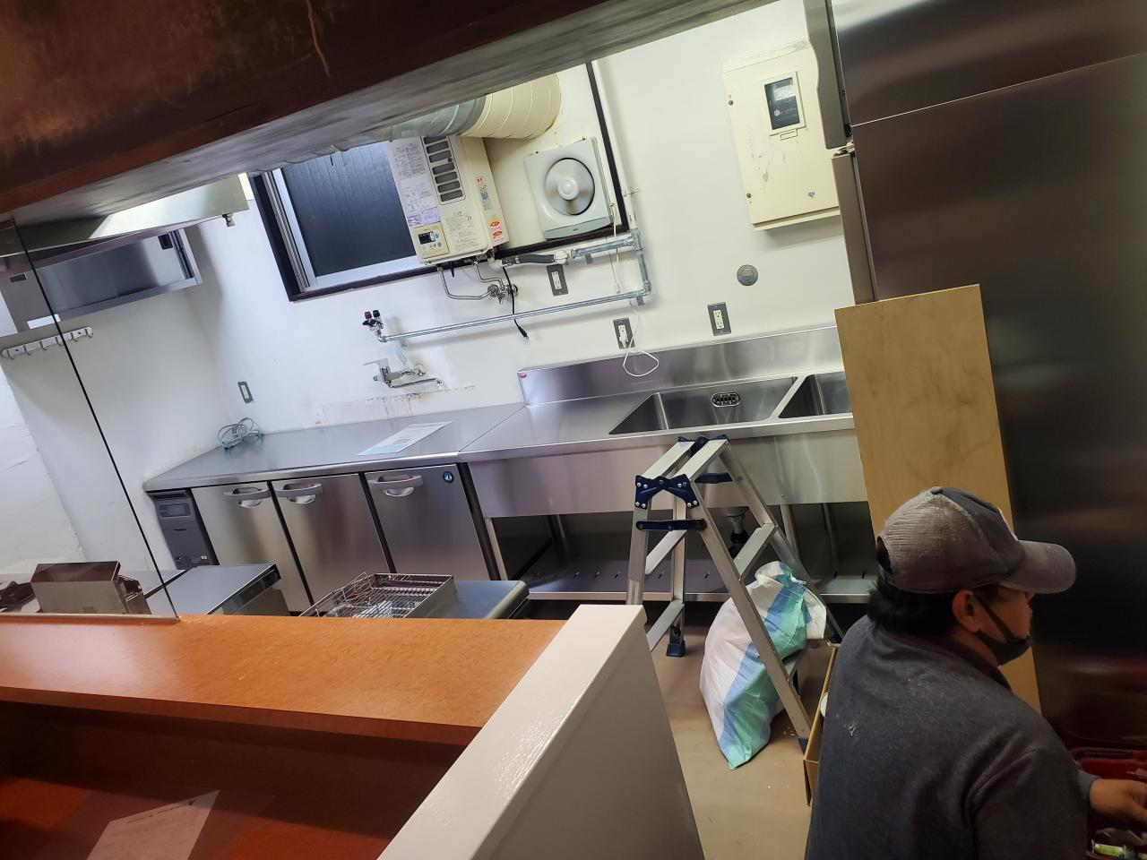 本日は、厨房機器の設置接続の工事をさせていただきました。