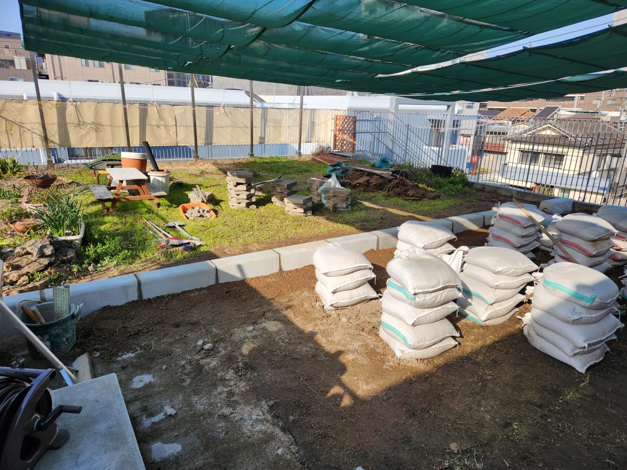 そして、歩車ブロックを運び込み、並べてこの日の作業は終了。